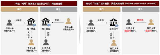 图表12:传统模式 vs 稳定币“对敲”资金路径示意图