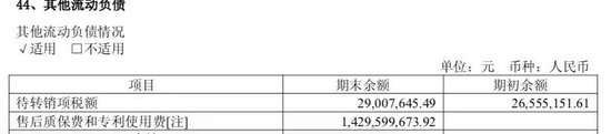2022年开始,该公司将售后质保费、专利使用费和印度公司预计税款及罚金等合计计算。截至2022年、2023年年末,该数据分别是25.48亿元、31.58亿元。2024年,传音控股将售后质保费、专利使用费列为其他流动负债,当年年末合计是14.3亿元。
