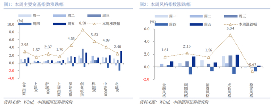从风格来看,本周小盘风格相对占优,中证1000(4.09%)涨幅大于沪深300(2.37%);成长风格表现领先,涨超5%,仅稳定风格录得小幅下跌。