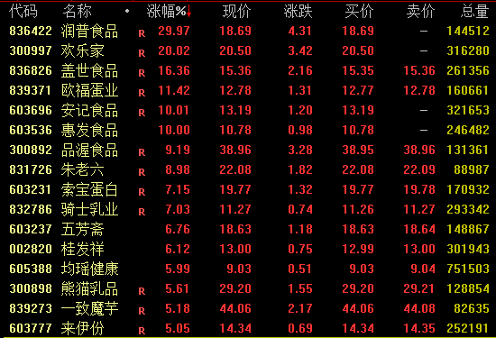 食品饮料板块盘中强势拉升,截至收盘,润普食品、欢乐家涨停,盖世食品涨超16%,安记食品、惠发食品亦涨停。