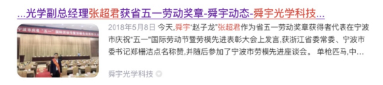 而舜宇光学科技官方网站早前发布的《舜宇光学科技副总经理张超君获省五一劳动奖章》,目前已无法在其官网检索到相关信息,页面新闻资讯栏目仅显示到2019年。