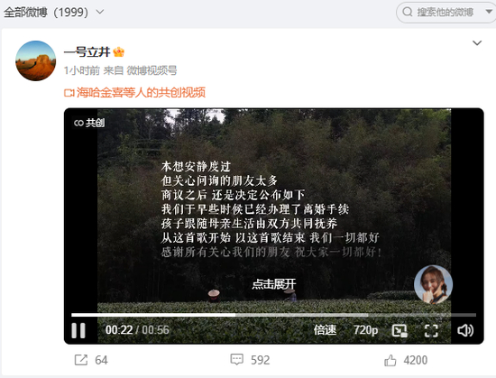 今年5月,海哈金喜再度发布视频回应和李亚鹏的感情状况,声称没离婚,但“确实很久没见了”,两人在各忙各的工作。