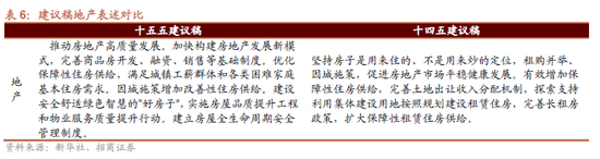 要点六:地产的表态变化。在地产方面,本次建议稿并未提到“房住不炒”,整体政策取向符合近年来推动地产高质量发展的基调。