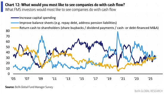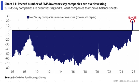 3.53%投资者认为AI已提高生产力;20年来首次投资者认为出现过度投资,但并未引起资产负债表担忧