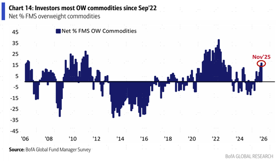 6. 投资者超配商品比例为17%,为2022年9月以来新高
