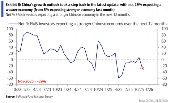 1.认为中国经济未来12个月走强的人减少到-29%(vs. 10月8%)