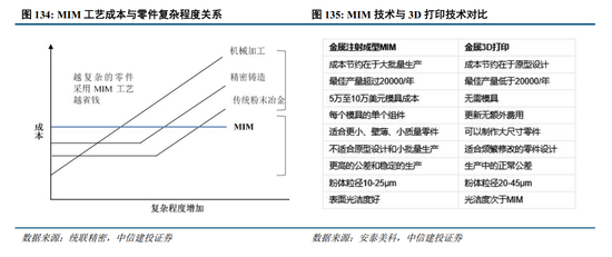 MIM(Metal Injection Molding,金属粉末注射成型)是一种生产复杂精密零件的“近净成形”的先进制造技术,具备大批量、高效率成形特点,是生产高精度、高强度、高耐磨、高耐腐蚀、高复杂形状金属零件的低成本解决方案,是国家重点支持的高新技术领域之一。中国已经成为最大的MIM市场,随着人形机器人、AI终端设备、智能穿戴设备、高端消费电子、高端制造等行业发展和升级,对高精度、高复杂性、高强度等零件需求进一步提升,MIM工艺在精密、复杂、关键零部件生产中的优势将得以进一步凸显。