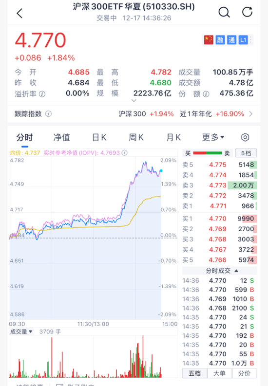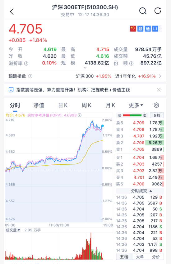 午后多只宽基ETF放量异动,截至发稿,四只主流沪深300ETF成交额超过70亿元。