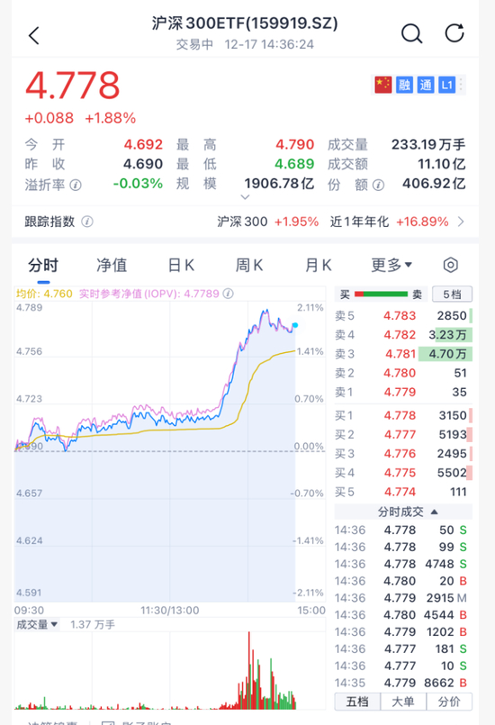 其次,多只沪深300ETF放量异动。