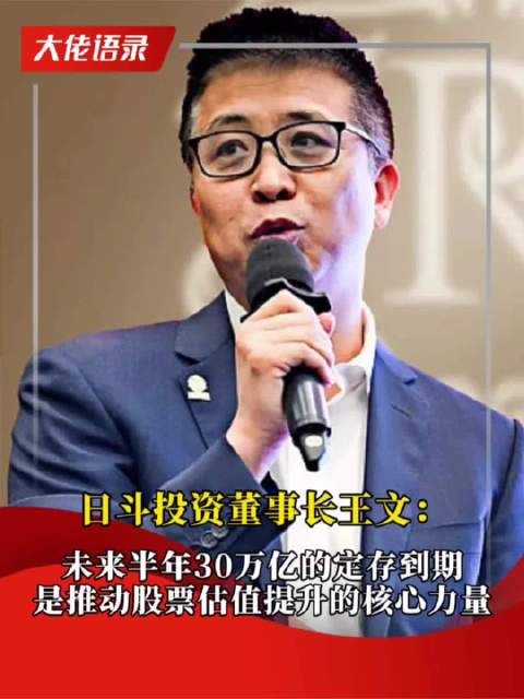 视频丨日斗投资董事长王文:未来半年30万亿的定存到期 是推动股票估值提升的核心力量 市场资讯 01.03 09:40 来源:全景网官微 日斗投资董事长王文:未来半年30万亿的定存到期 是推动股票估值提升的核心力量