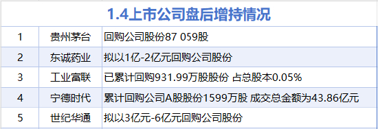 1月4日增减持汇总:贵州茅台等5股增持 湖南白银减持(表) 新浪证券 新浪证券官方账号 01.0421:44 关注 据统计,1月4日,贵州茅台、东诚药业、工业富联、宁德时代、世纪华通披露增持情况。湖南白银披露减持情况。