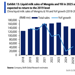 报告指出,2026年多个消费细分领域将迎来同比基数的显著下降窗口。白酒行业已形成极低的市场比较基准;而在乳制品领域,国内前两大企业的液态奶销售额经历两年深度调整后,已回落至2019年水平。