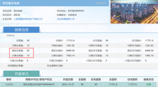 环宇玖章则在12月27日首开,推出90套,目前已售15套,但另有65套显示为“已预定”,远远超过已售数量。