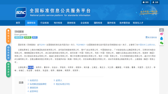 值得注意的是,在国家市场监管总局旗下的全国标准信息公共服务平台上,作者发现该版羽绒服国家标准的制定方,除了上海纺织集团检测标准有限公司、中国服装协会、广州检验检测认证集团有限公司等行业协会和专业机构之外,这第一家参与制定企业就是波司登,国家标准起草人中,第一位就是波司登的董事会主席高德康。