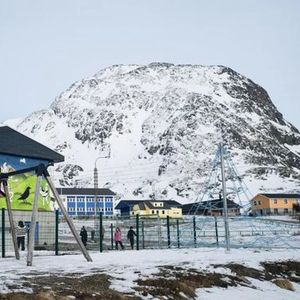 2025年3月21日,在丹麦自治领地格陵兰岛纳尔萨克,孩子们在路边玩耍。新华社记者彭子洋摄