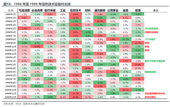 2)财务成本上升。1998年先是由于海外冲击/市场动荡导致信用利差扩大,1999年经济过热风险下,10年美债收益率几乎是全年上涨,全年涨幅达到180bp(图17),叠加后期激进的投融资活动。