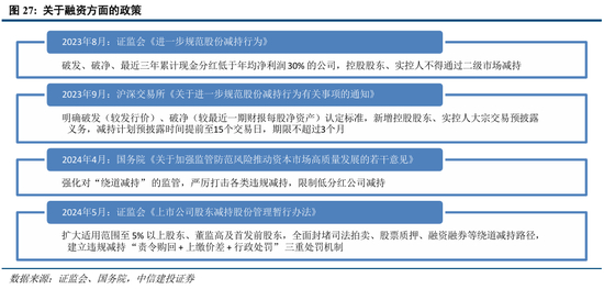 减持方面全面从严。2023年以来,监管层构建“全链条约束+穿透式监管”的股东减持政策体系,核心趋势体现为强化大股东减持限制、全面封堵绕道减持渠道、提升违规成本,核心目标是维护市场稳定、保护中小投资者权益,推动形成“减持有规、套现有度”的市场生态。
