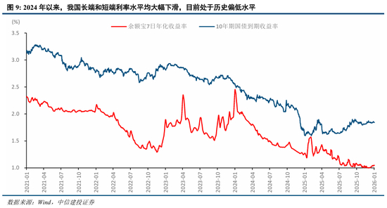 利率环境上,长期低利率重塑股债配置逻辑:债券策略转向票息主导与中短久期,权益市场吸引力提升,“固收+”产品持续爆发;中期长端利率反弹虽受通胀预期与供给压力驱动,但对A股影响有限,“股债跷跷板”效应反而可能引导资金流入权益市场,进一步支撑A股走势。此外,在广谱利率下行的大背景下,随着2026年大量此前的定期存款到期,居民“存款搬家”再配置的需求或将成为市场的最大边际增量。