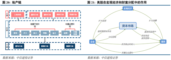 往后来看,房地产带动各行各业欣欣向荣的局面可能一去不返,景气集中存在于少数新兴产业,为经济总量贡献增速。如何让全社会分享少数新兴产业的景气?在这个问题上,美股提供了一种答案:美股联系起来宏观经济、企业、居民三方面,成为分配经济增长红利的核心工具。