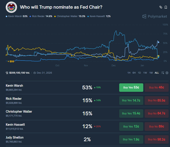 在原头号热门凯文·哈塞特因白宫留任需求基本退出的背景下,里德尔异军突起,成为执掌美联储权杖的领跑者之一。预测市场Polymarket数据显示,里德尔获提名赔率近期显著上升。