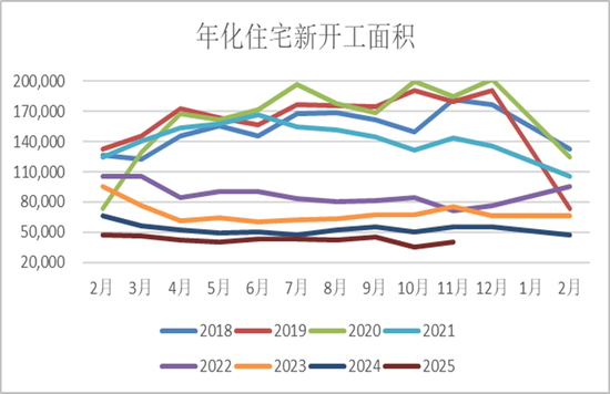 住宅新开工面积比21年的高点下降了百分之接近80%。