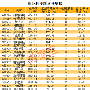 从预增幅度来看,臻镭科技居首,公司预计2025年年度归母净利润为1.23亿元到1.45亿元,同比增加529.64%到642.26%,主要系特种集成电路行业下游客户的产品需求有所增加,同时卫星通信领域市场拓展节奏稳步加快所致。