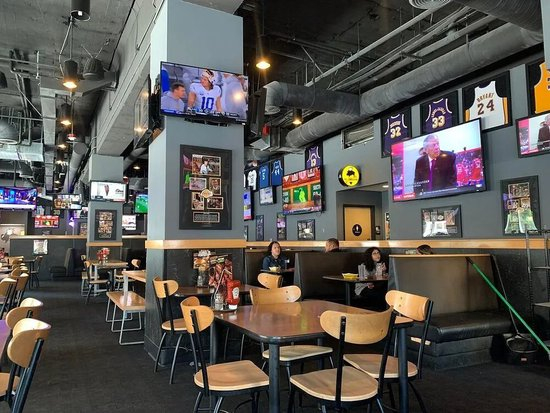 美国人喜欢边看橄榄球赛边喝酒,NFL超级碗的比赛日,啤酒销量比平日高20%至30%,多人聚会观赛的情况下,人均能喝6瓶[4]。美国连锁酒吧Buffalo Wild Wings在门店里高挂十余块电视屏幕,实时转播赛事进展。