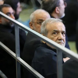 2025年7月2日,伊朗首都德黑兰,伊朗总统佩泽希齐扬参加纪念仪式。新华社发