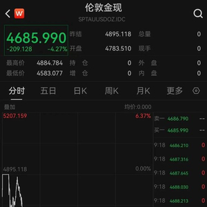 Wind数据显示,截至北京时间2月2日9:18,伦敦现货黄金报4685.99美元/盎司,跌超4.2%,日内最低触及4583.077美元/盎司;伦敦现货白银报82.887美元/盎司,跌超2.7%。