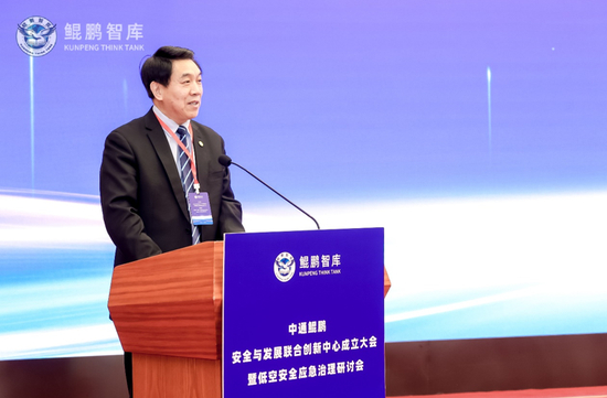 中国灾害防御协会会长郑国光在致辞中表示,安全是航空业的生命线,更是低空经济发展的前提。中通鲲鹏安全与发展联合创新中心要把创新作为第一动力,把安全作为底线要求,在低空领域安全与发展上发挥重要作用。为此,他提出五点希望:坚持高点站位,服务国家战略;聚焦职责使命,筑牢安全屏障;坚持科技赋能,促进融合发展;注重成果转化,赋能行业发展;汇聚天下英才,共建开放生态。