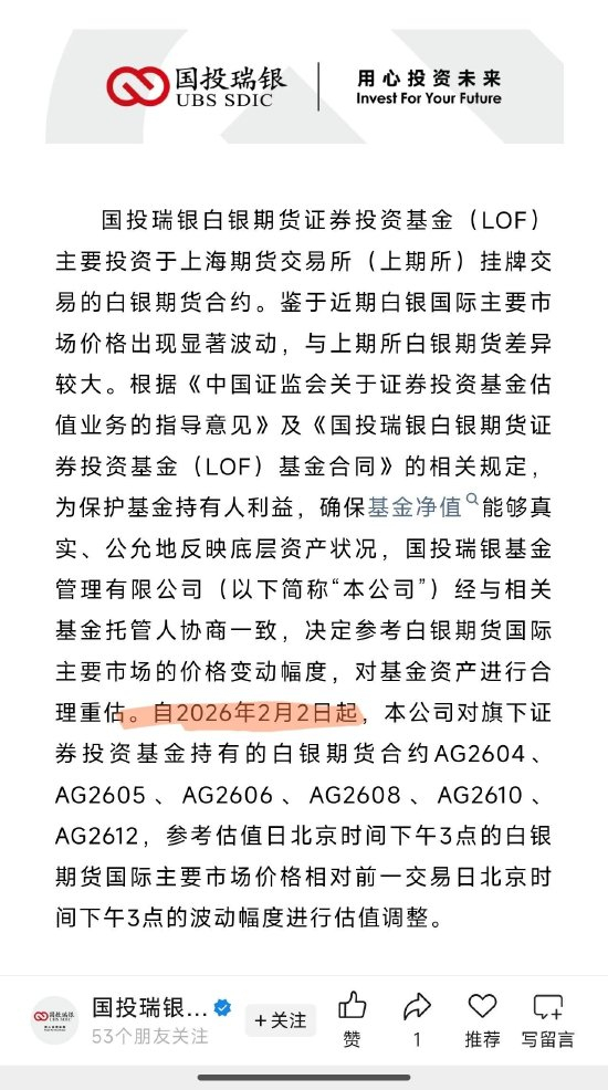 基金公司根据国际白银价格调整估值了。