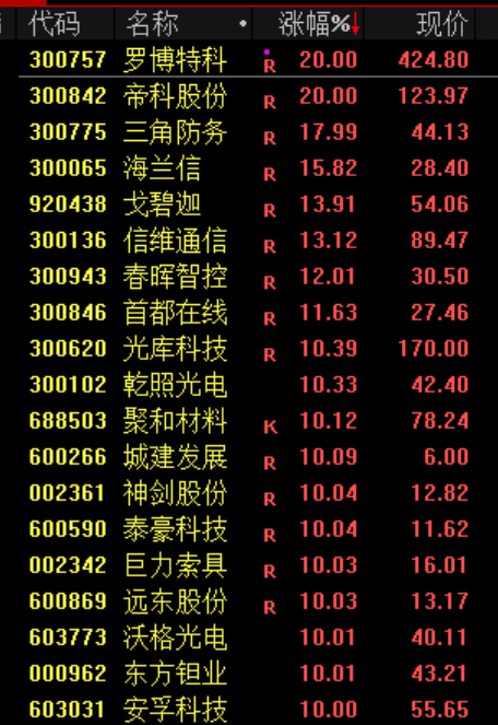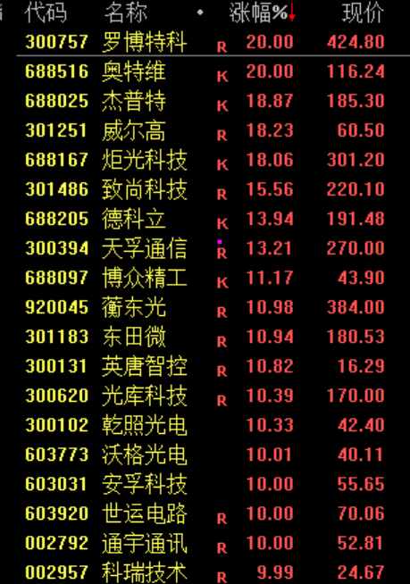 CPO等算力硬件股延续涨势,罗博特科、天通股份等涨停。