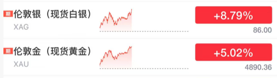 黄金大涨5%,白银上涨近9.1%。在过去两个交易日里,黄金白银一度崩盘,导致价格急挫;如今金银回升,收复了部分失地。