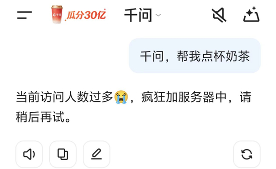 2月6日,阿里千问上线“春节30亿免单”,发放奶茶免单卡。