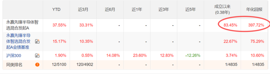 最为夸张的当属2025年9月初成立的永赢先锋半导体智选混合发起A(025208.OF),成立以来净值增长83.4%,年内收益率已达37.5%,年末规模逼近百亿。