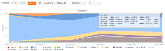 但基金成立以来,每个报告期,配置权重超5%的行业均有5-6个。