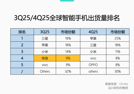 单季度的业绩受当季新机型上市影响较大,但即便按照全年业绩指引看,传音2025年度营收利润双降,净利润直接腰斩,手机也从全球第四[3]掉进了others[4]。