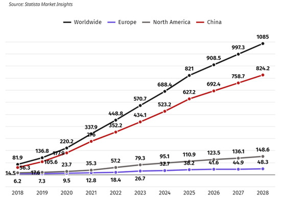 权威市场调查机构Statista的数据显示,社交电商在全球电商市场中的份额逐年升高,从2018年的5.5%增至2024年的约19.4%;到2028年,预计达到21.7%,届时市场规模估计突破万亿美元。
