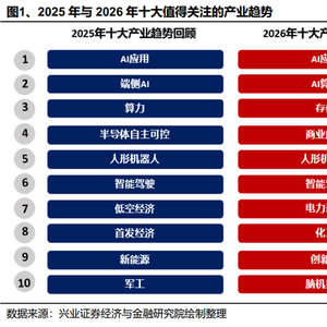 2025年初,我们聚焦传统产业升级与新质生产力培育,提出十大值得关注的产业趋势。回顾来看,多数方向成为贯穿2025年的核心投资主线。步入2026年,我们紧跟产业趋势迭代与政策导向,在前期判断基础上再作更新和补充,推出2026年十大产业趋势,供各位投资者参考: