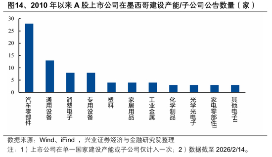 另一方面,全球供应链重构也加速了中国企业的产能全球化布局。根据A股上市公司在东盟/印度/墨西哥建设产能/子公司公告数量观察中国企业出海情况,2025年这一数值来到229家,较2024年将近翻倍。并且,中国产能出海并非是简单的供应链转移,而是中国本土供应链的延伸,即建厂期需要大量的中国设备进口,投产后则需要持续从中国进口中间品。