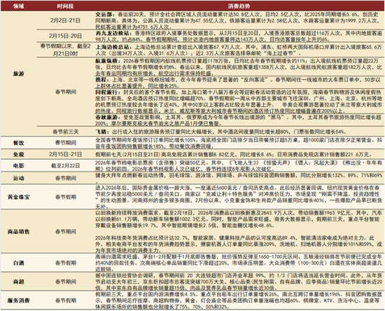2026年春节假期数据出炉,总体来看消费景气度得到提升。在本文中,我们从宏观、策略、轻工零售美妆、旅游酒店及餐饮、纺织服装珠宝、传媒、互联网等角度为大家详细解读。