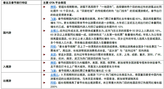 图表:主要OTA平台春运及春节假期国内旅游表现