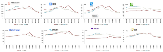 1、下沉市场、高线城市双旺,出入境延续高景气。据交运部预计[30],春运前20天全社会跨区域人员流动量累计50.8亿人次,同增5.6%创同期新高。结构上,“反向过年”带动高线城市人流,北京/天津/南京重点业态日均销售额分别增长12%/10%/11%。下沉市场休闲消费同样活跃,县域旅游热度走高,美团数据[31]显示KTV、台球等服务消费同比增两至三成。此外,出入境游在免签政策推动下回暖:春秋旅游[32]称土耳其等长线目的地热度同增超两倍,航旅纵横[33]显示出入境机票预订量日均同比增8%。