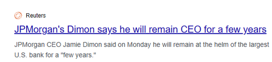 戴蒙领导这家美国规模最大、获利能力最强的银行已有二十年之久,是美国企业界最杰出的高阶主管之一。戴蒙此前曾表示:‘我热爱我的工作。至于我还能做多久,这取决于董事会。只要我有精力、有精神、有激情,我就想继续做下去。’