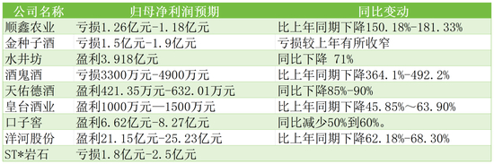 截至2月10日,已有9家白酒上市公司披露业绩预告,其中有4家亏损,另外5家虽然保持盈利,但归母净利润均出现大幅下滑,下滑幅度都在50%以上,甚至有酒企出现了363.1%以上的跌幅。