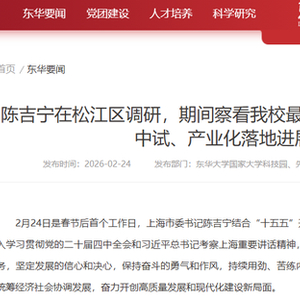 2月24日是春节后首个工作日,上海市委书记陈吉宁结合“十五五”开局工作在松江区调研时指出,要深入学习贯彻党的二十届四中全会和习近平总书记考察上海重要讲话精神,按照“十五五”规划确定的目标任务,坚定发展的信心和决心,保持奋斗的勇气和作风,持续用劲、苦练内功,狠抓转型发展重点任务,更好统筹经济社会协调发展,奋力开创高质量发展和现代化建设新局面。