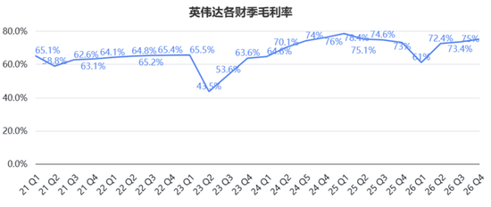 再看利润表现,英伟达第四季度毛利率为75%,环比增长1.6个百分点,同比上涨2个百分点。