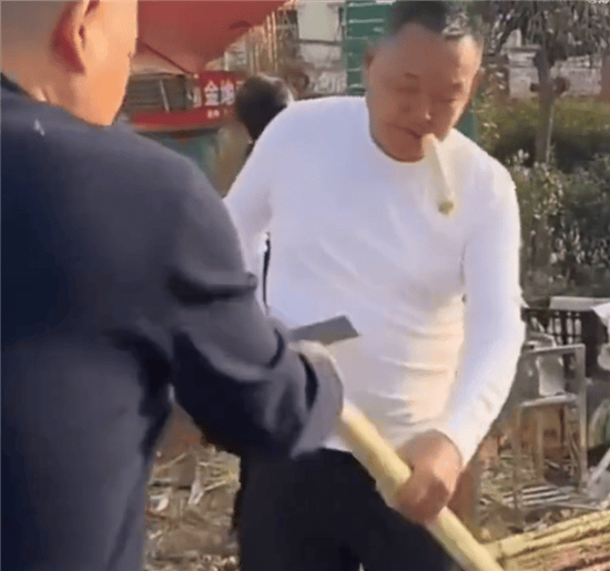 视频里,于东来穿着日常便服,站在街边甘蔗摊前,动作熟练地削皮、切段,还时不时啃上一口,状态松弛,网友调侃其“退休后一心只想卖甘蔗”。