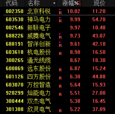 电力、电网设备股拉升,神马电力、新联电子等涨停。
