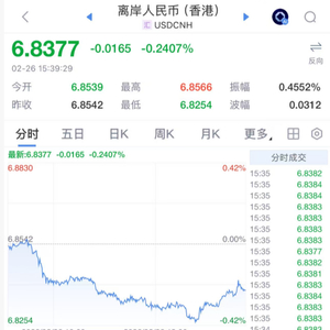 2月26日,更多反映国际投资者预期的离岸人民币汇率一度大涨200点,盘中升破6.83关口,触及近三年最高水平。中间价方面,当日人民币对美元中间价上调93个基点,报6.9228。
